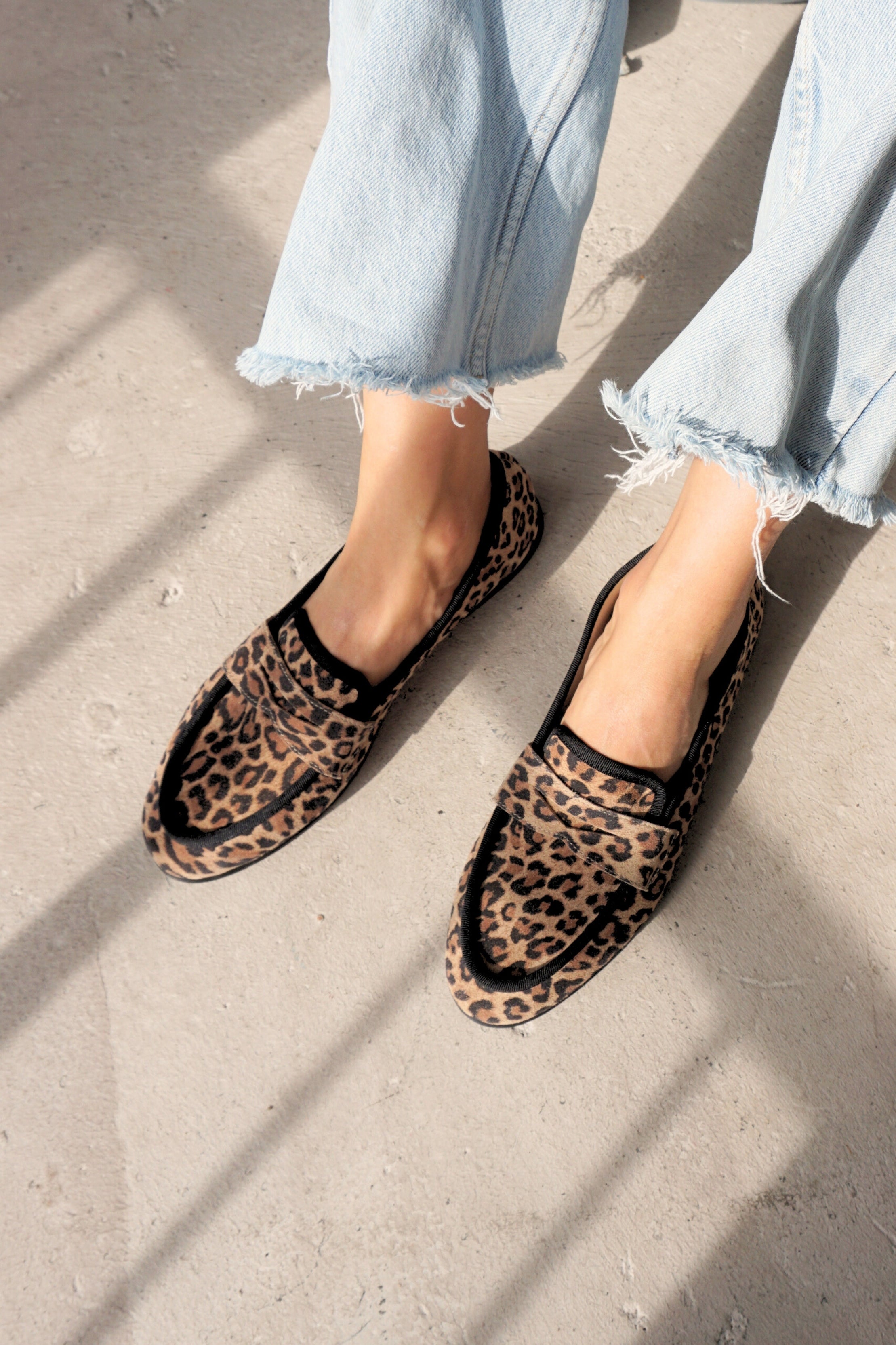 • Eleganter Loafer aus weichem Veloursleder in Leo-Print