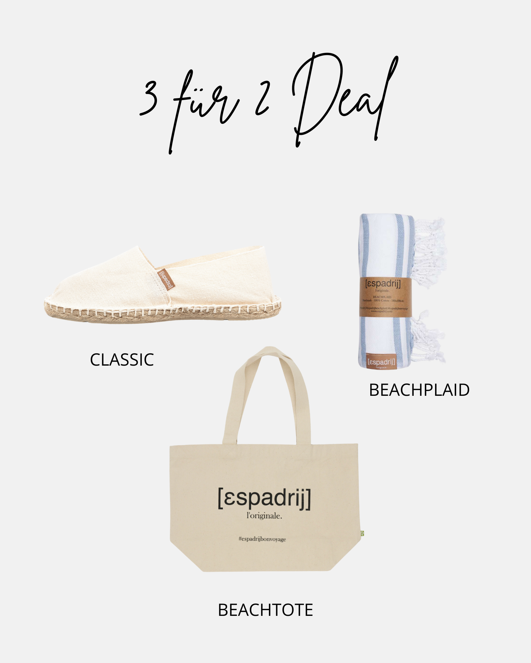 3 for 2 Deal: Classic + Beachplaid deiner Wahl + Beachtote gratis