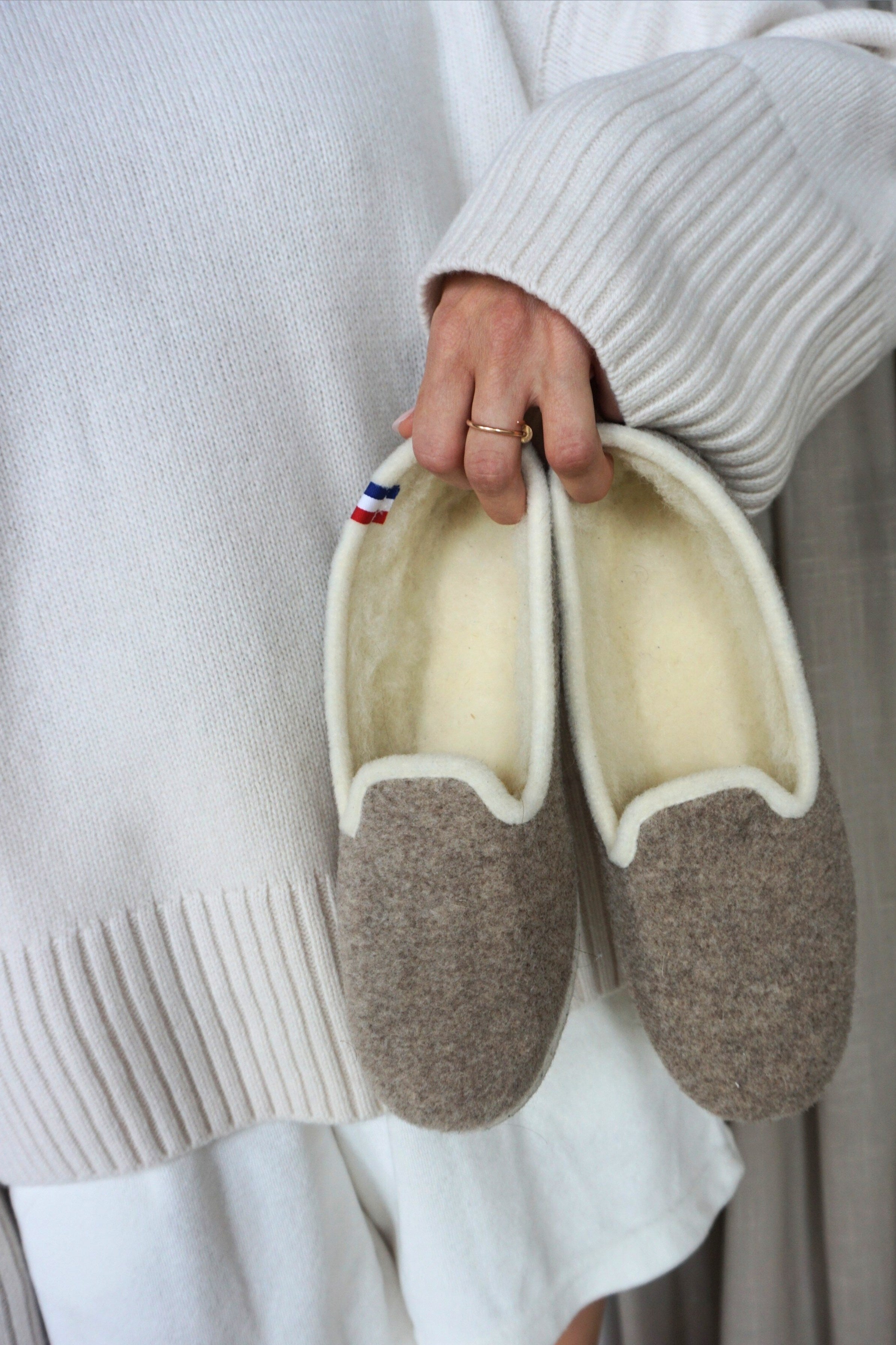 Upper material: felt Lining: lambswool Sole: felt, rubber